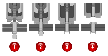 - A solid circle lock between the bolt and sleeve is formed just prior to the pin breaking flush with the sleeve head, completing the installation.